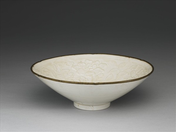 定窯 白瓷印花玫瑰紋花口碗