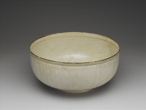 定窯 白瓷劃花蓮瓣游魚紋碗