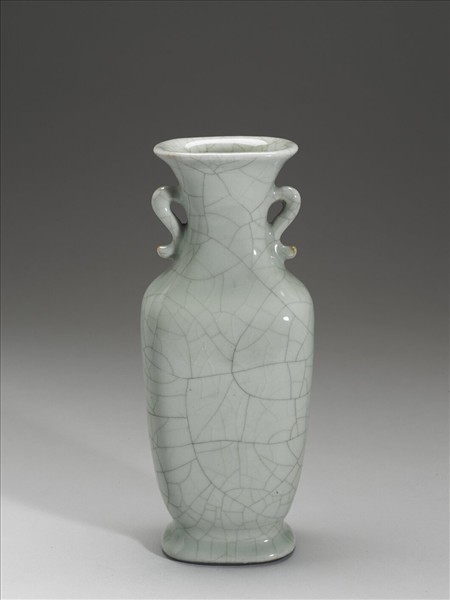 仿官釉雙耳扁瓶