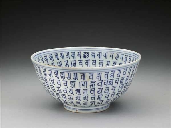 青花梵文碗