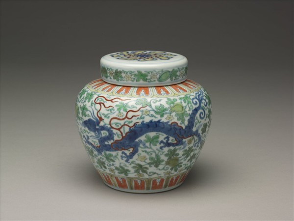 五彩雙龍紋蓋罐