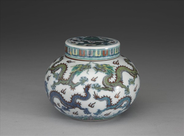 鬥彩九龍紋蓋罐