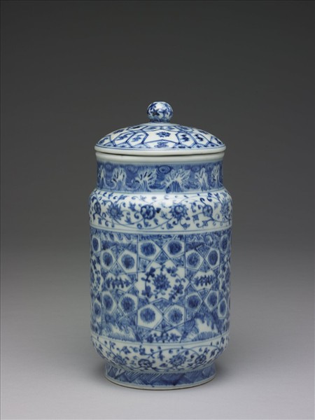 青花幾何花卉紋蓋罐
