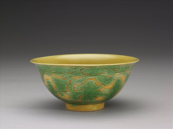 黃地綠彩嬰戲圖碗