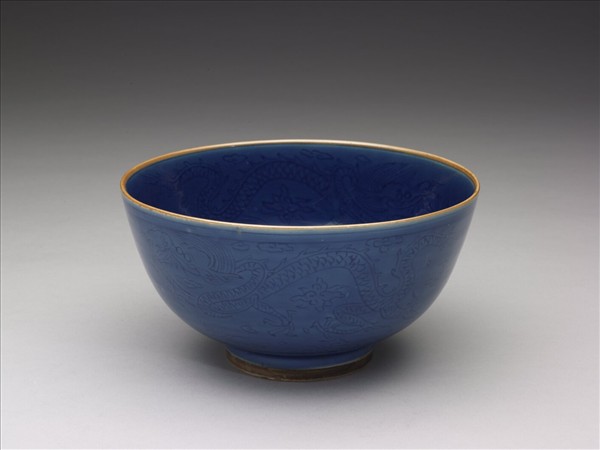 霽青釉雲龍紋墩子碗