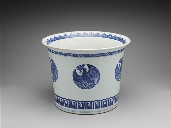 青花團鳳紋花盆