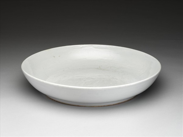 敞口,淺壁弧形,矮圈足。胎骨較厚,釉色純白,樸素無紋飾,器底全部露白胎。