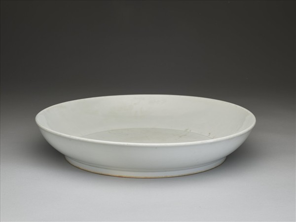 侈口,淺壁弧形,矮圈足。胎骨較厚,釉色純白,樸素無紋飾,器底全部露白胎。