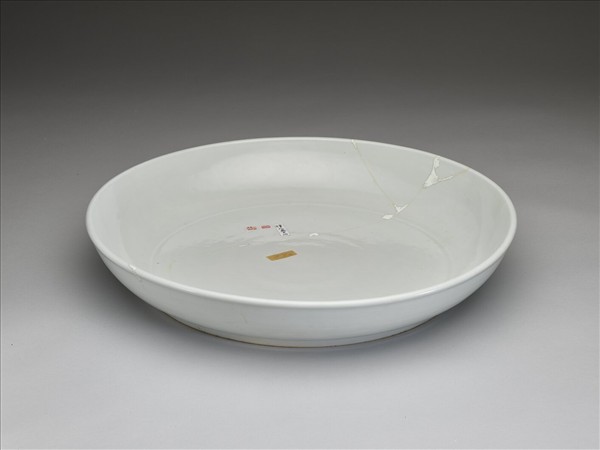 侈口,淺壁弧形,矮圈足。胎骨較厚,釉色純白,樸素無紋飾,器底全部露白胎。