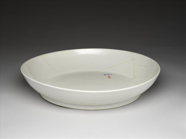 敞口,淺壁弧形,矮圈足。胎骨較厚,釉色純白,樸素無紋飾,器底全部露白胎。