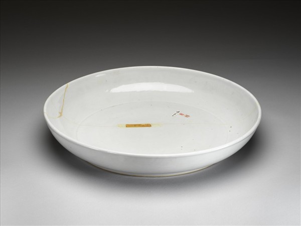 侈口,淺壁弧形,矮圈足。胎骨較厚,釉色純白,樸素無紋飾,器底全部露白胎。