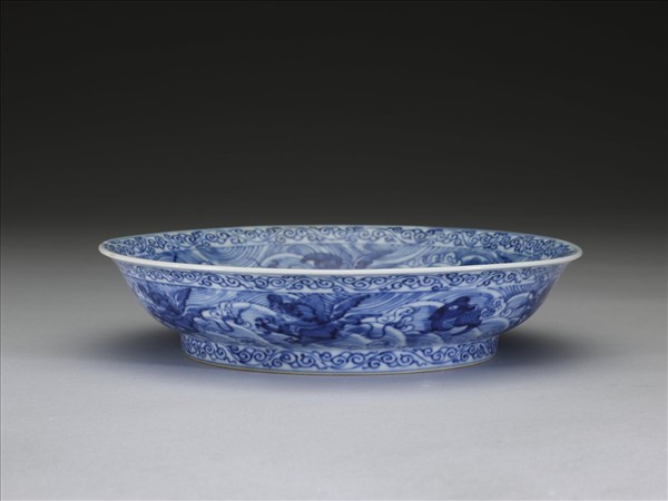 青花波濤海獸紋盤