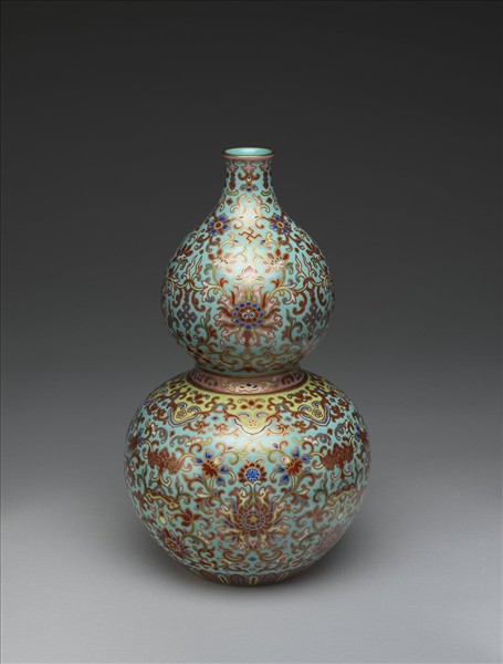 粉彩湖綠地番蓮紋葫蘆瓶