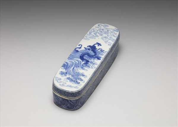 官窯 青花龍紋長方墨盒