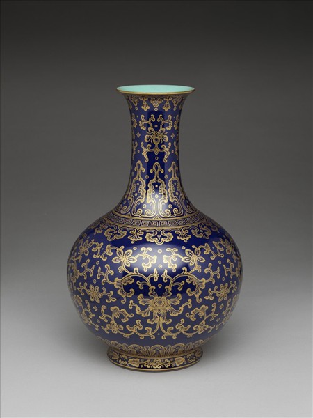 霽青地描金番蓮紋瓶