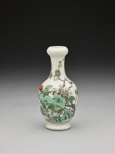 五彩花卉紋蒜頭瓶
