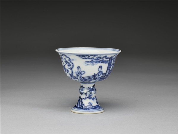 青花仕女圖高足杯