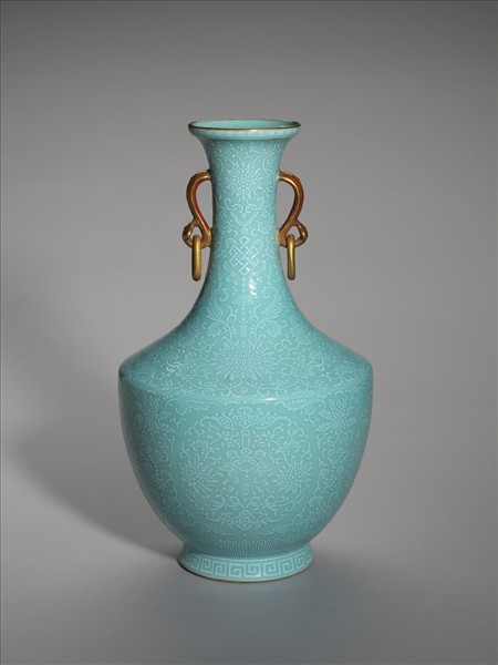 松石綠釉番蓮紋活環瓶