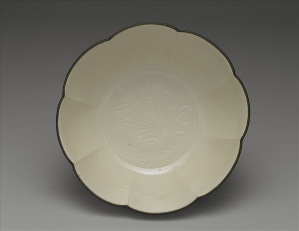 定窯 白瓷劃花蓮荷紋花式洗
