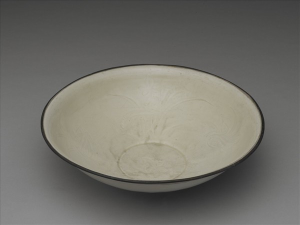 定窯 白瓷劃花蓮花雙鳧紋碗