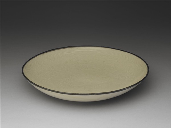 定窯 白瓷印花牡丹雙魚紋盤
