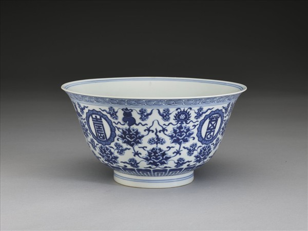 青花番蓮八寶萬壽無疆紋碗