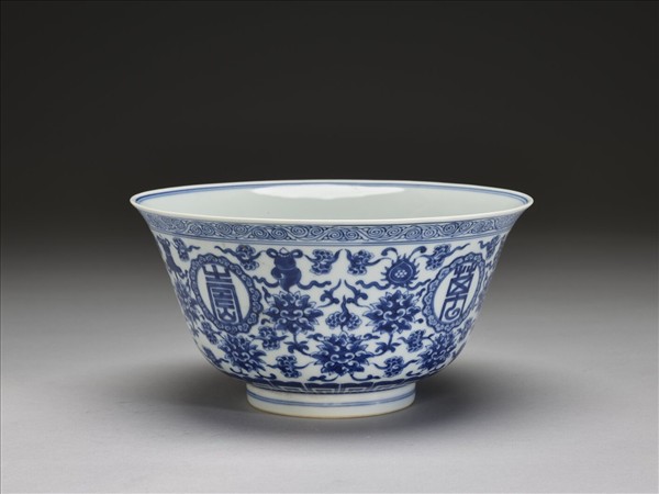 青花番蓮八寶萬壽無疆紋碗