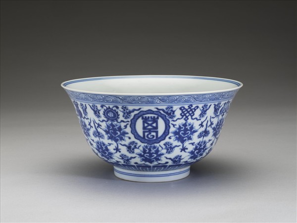 青花番蓮八寶萬壽無疆紋碗