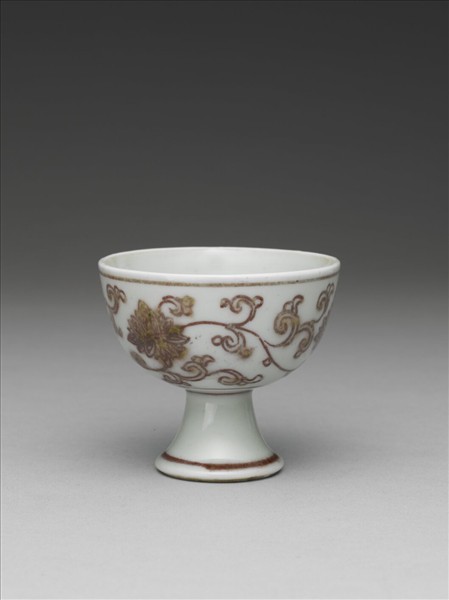 釉裡紅番蓮紋高足杯