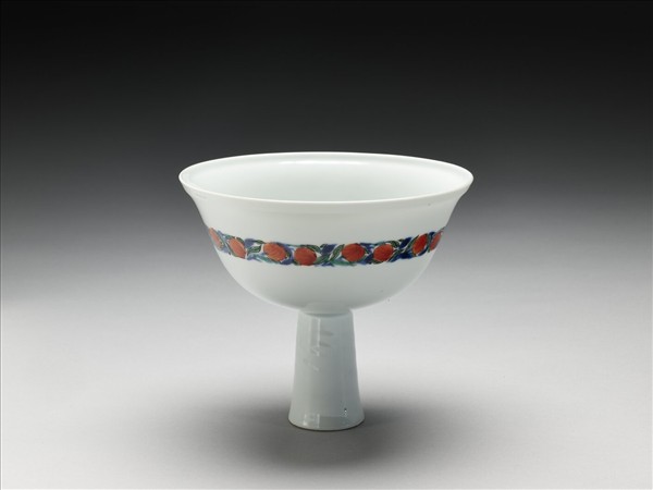 五彩蟠桃紋高足碗