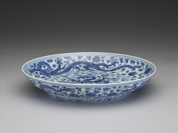 青花番蓮龍紋盤