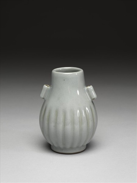 仿官釉瓜楞貫耳瓶