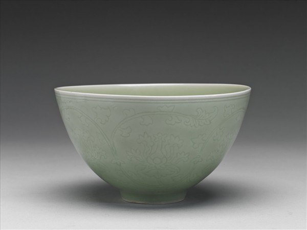 冬青釉劃花番蓮紋碗