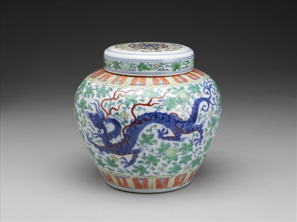 天字款鬥彩藤瓜果龍紋蓋罐