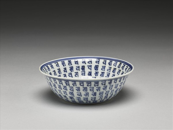青花梵文碗