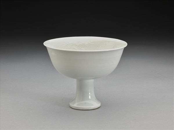 甜白釉雙龍戲珠紋高足碗