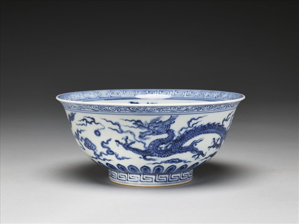 青花雙龍花卉紋碗