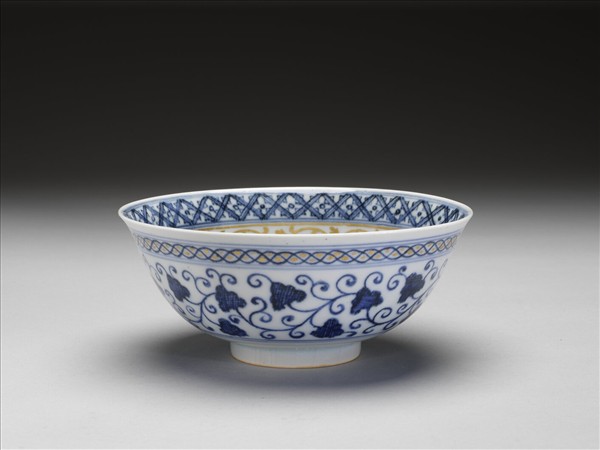 青花描金蓮塘紋碗