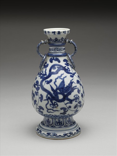 青花雙龍獸耳環瓶