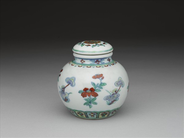 鬥彩靈芝花卉紋蓋罐