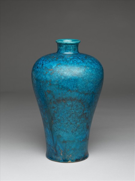 孔雀綠釉番蓮紋梅瓶