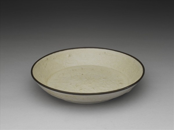 定窯 白瓷印花蓮塘鴛鴦紋盤