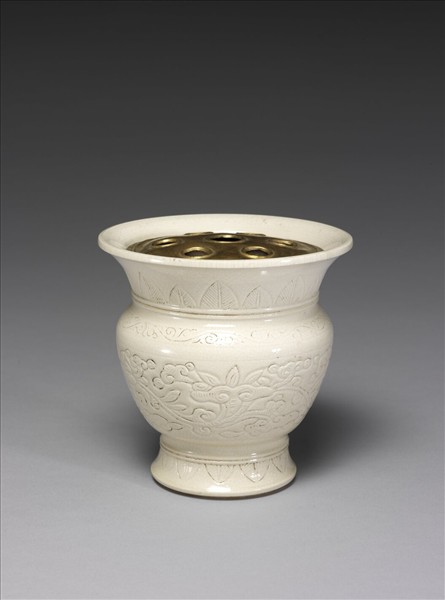 白瓷劃花靈芝紋渣斗