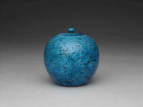孔雀綠番蓮紋蓋罐