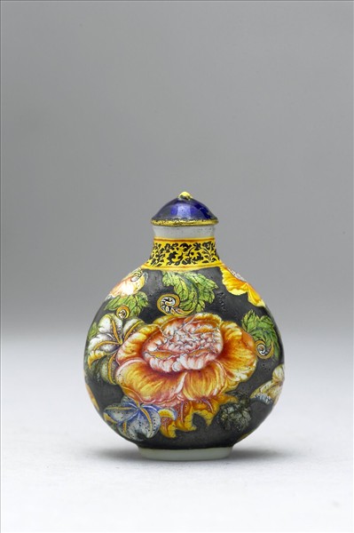 玻璃胎畫琺瑯黑地花卉紋鼻煙壺