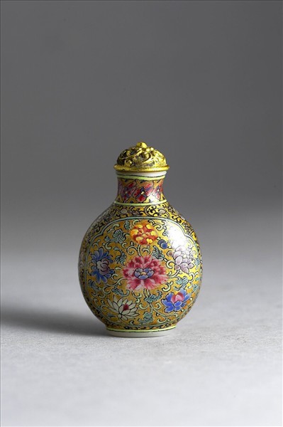 玻璃胎畫琺瑯金地花卉紋鼻煙壺