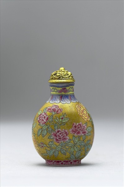 玻璃胎畫琺瑯金地花卉紋鼻煙壺