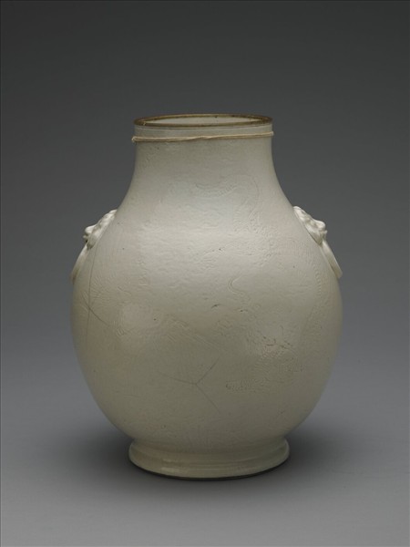 白瓷龍鳳紋獸面銜環壺