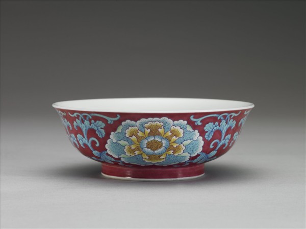 琺瑯彩紅地花卉紋碗