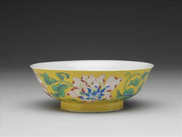 琺瑯彩黃地菊花淺碗